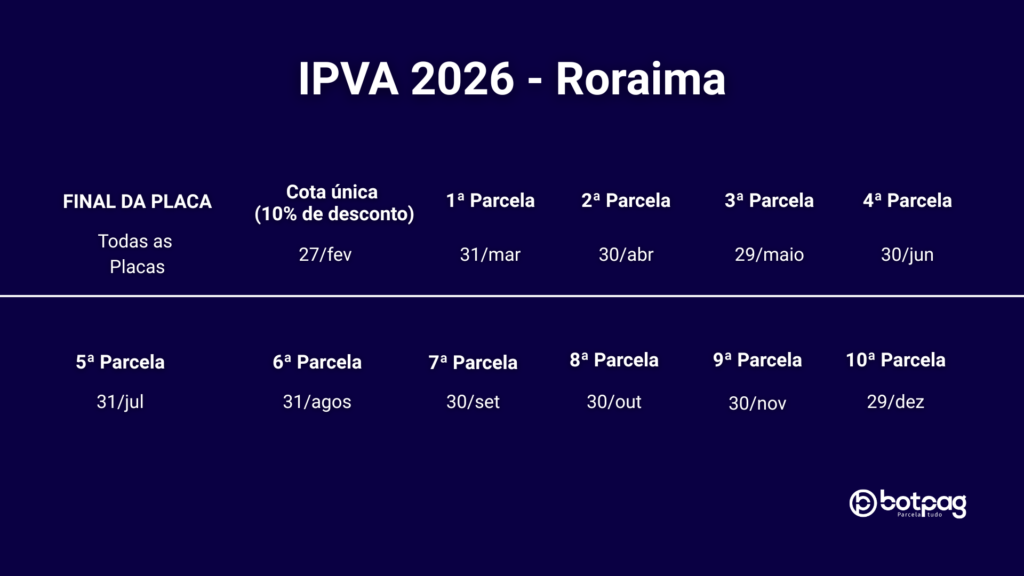Uma característica importante do IPVA 2026 em Roraima é que a data de vencimento é unificada para todos os veículos, independentemente do final da placa. Isso simplifica a organização e garante que todos os proprietários tenham o mesmo prazo para se programar.