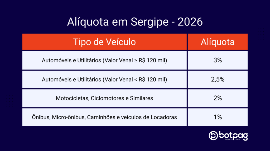 Alíquotas do IPVA 2026 em Sergipe