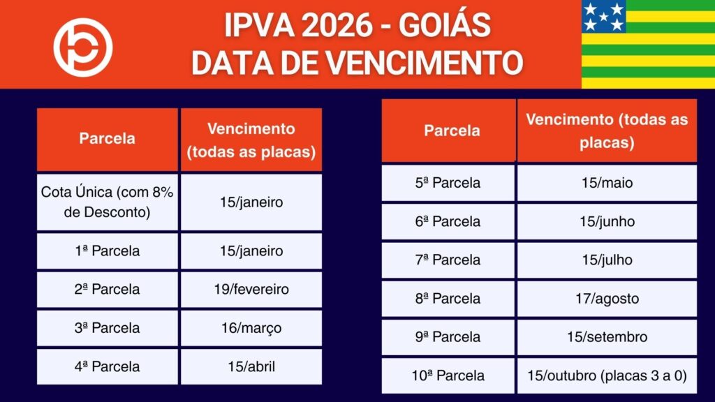 Tabela de Vencimentos do IPVA 2026 em Goiás