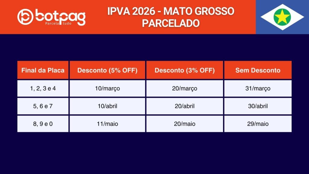 A seguir, apresentamos o calendário detalhado para o IPVA 2026 MT: