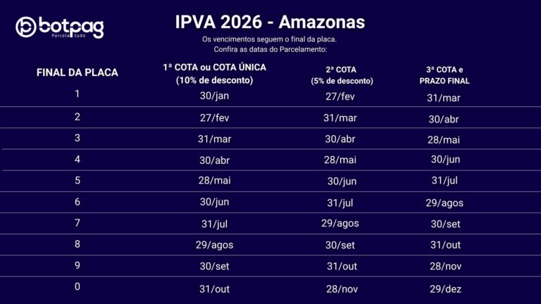 Parcelamento de IPVA AM, multas e licenciamento é com a Botpag®